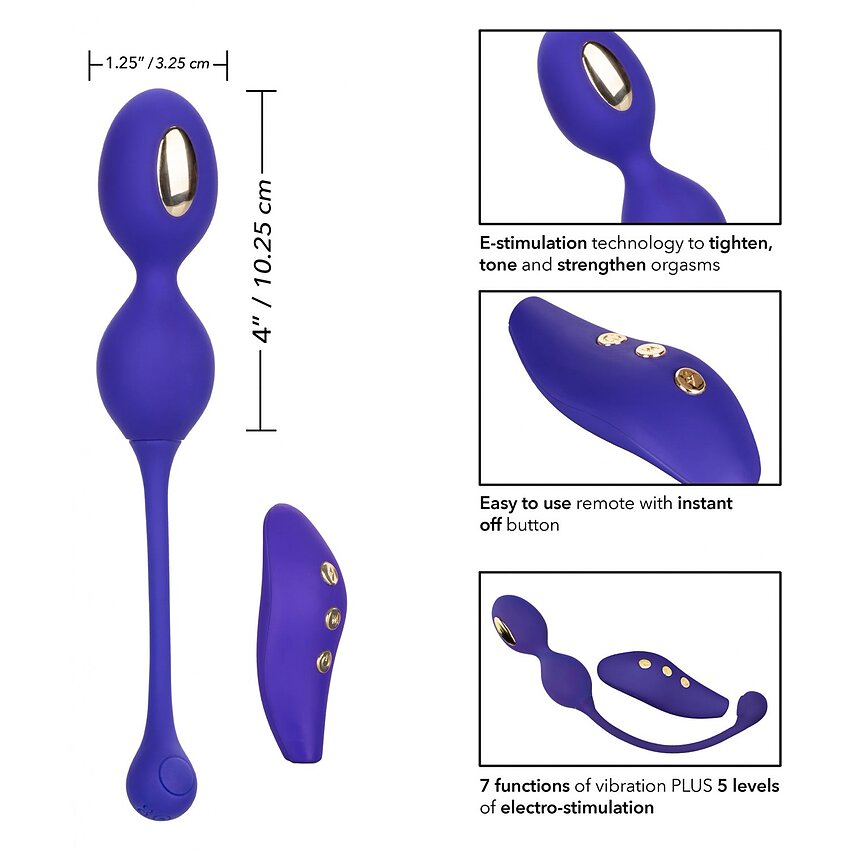 Un set de bile vaginale conceput pentru tonifiere mușchilor vaginali, are 7 funcții diferite de vibrație, pulsație și creștere treptată în tărie și 5 nivele independente de electro-stimulare (mici șocuri electrice ce provoacă bucurie și întăresc mușchii vaginali).
