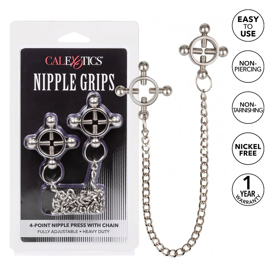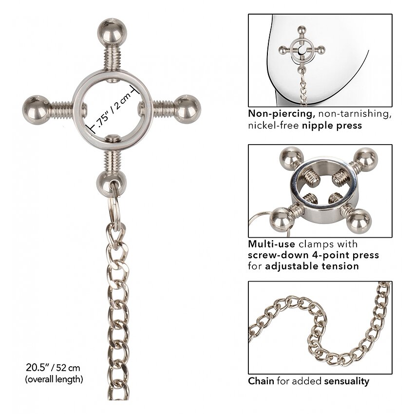 Crește senzația la următorul grad și bucură-te de jocul tachinat al sfârcurilor cu Nipple Grips 4-Point Nipple Press with Chain.