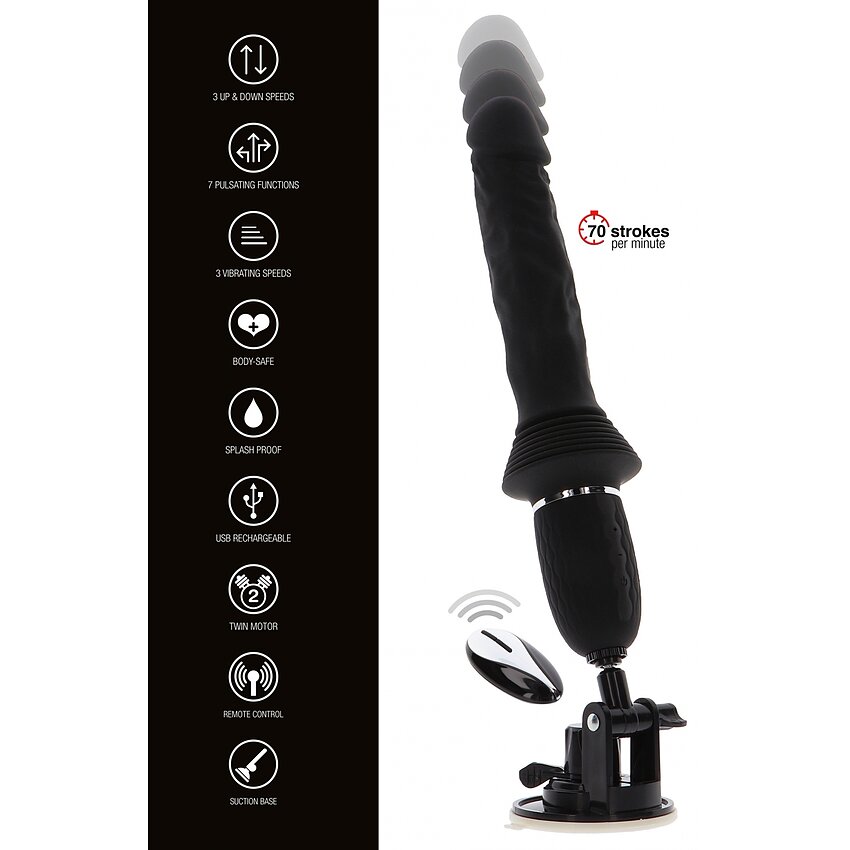 Cu o impresionantă viteză de 70 de vibrații pe minut, acest vibrator de împingere vă va duce plăcerea la noi culmi. Este echipat cu o telecomandă pentru o operare convenabilă și o bază de aspirare pentru distracție fără mâini.