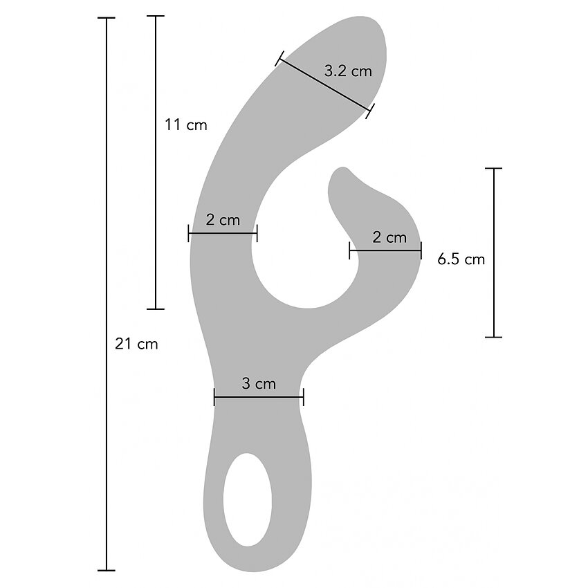 -lungime totală: 21 cm -lungime inserabilă: 11 cm -diametru: 3.2 cm -7 chipuri de vibrație -3 feluri de viteză