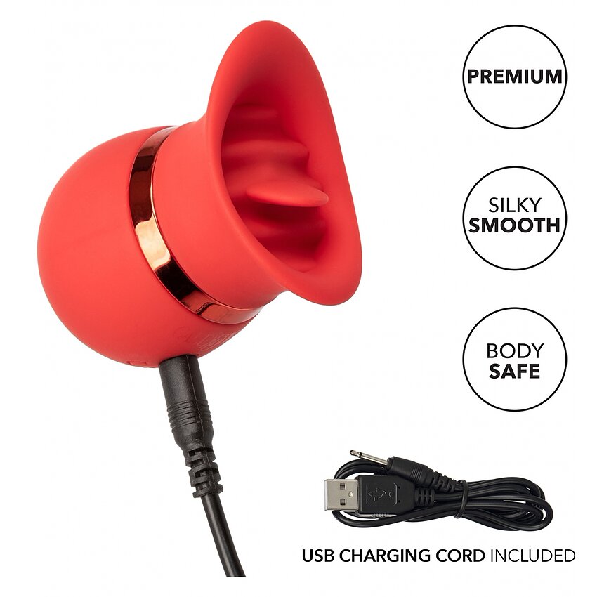 Locul de contact complet și teaserul în înfățișare de limbă care flutură au fost gândite pentru a se contura perfect la punctele tale de bucurie cele mai intime. Siliconul moale și suplu și corpul conturat incitant vă îngăduie să oferiți o desfătare pură.