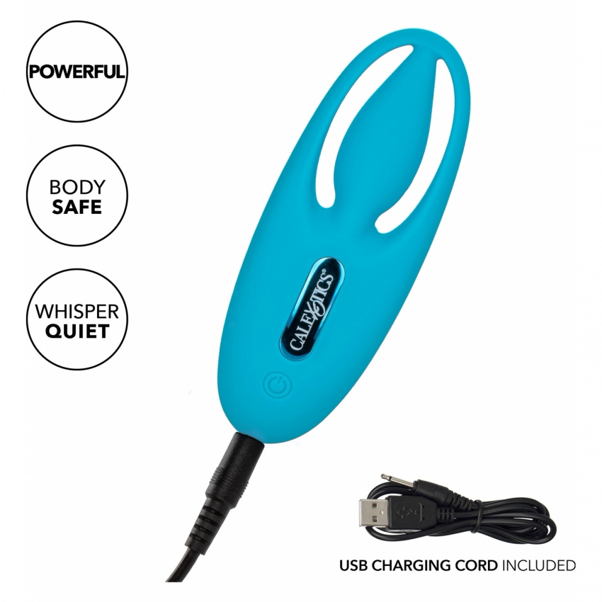 Lungime Totală: 10.25 cm Diametru: 3.75 cm Culoare: Albastru Material: Silicon Livrare: Confidențială Se încarcă complet în 60 minute Până la 70 minute de funcționare cu o încărcare Are acumulator cu Lithium Ion Are vibrații Sigur pentru corp 10 tipuri de vibrații Bateriile sunt incluse Rezistent La Apă Reîncărcabil Încărcare Prin USB Brand: CalExotics