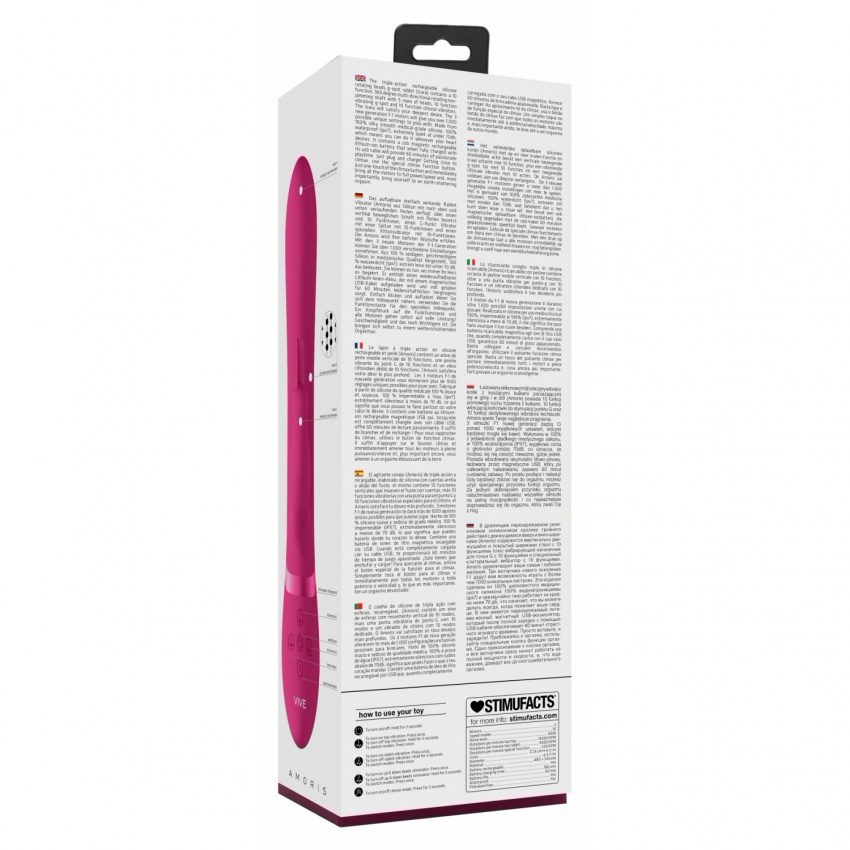 Amoris este un vibrator iepure atrăgător, cu mărgele. Cu un ax cu mărgele vertical, cu 10 funcții, un vârf vibrator pentru punctul G cu 10 funcții și un vibrator pentru clitoris dedicat cu 10 funcții, Amoris va satisface toate nevoile dvs sexuale.