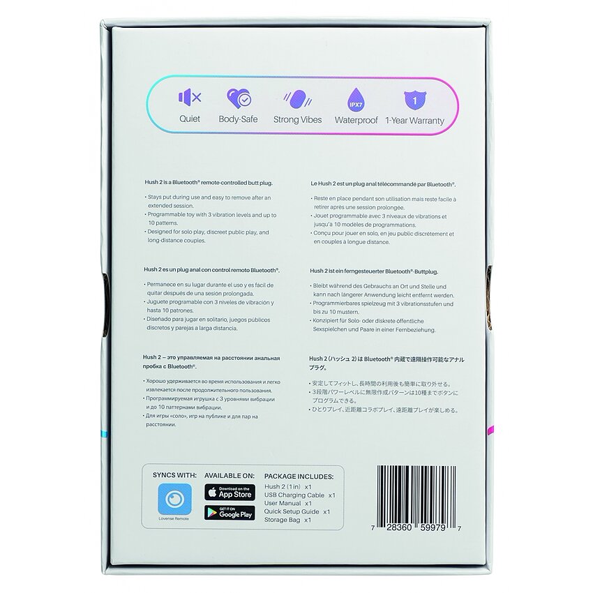 - Designul nou este ideal pentru utilizare pe termen concis și lung, acasă, la muncă, în cluburi sau oriunde. - Hush 2 este a doua generație a primului plug bluetooth din lume care furnizează control live de la distanță. - Vibrațiile sunt dominante și profunde.