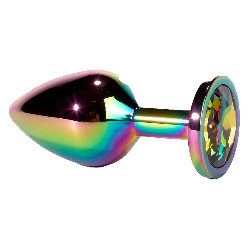 Anal Plug X-MEN Secret Shine Rainbow este o jucărie erotică proiectată pentru emoție vizuală și senzuală. Finisajul foarte fin, din aluminiu cromat, garantează o suprafață ușor de curățat și igienizat, iar designul său este perfect realizat pentru o inserție ușoară și stârnire precisă. Mai mult, la baza acestuia se află un cristal multicolor, ce menține distracția anală la înălțime.