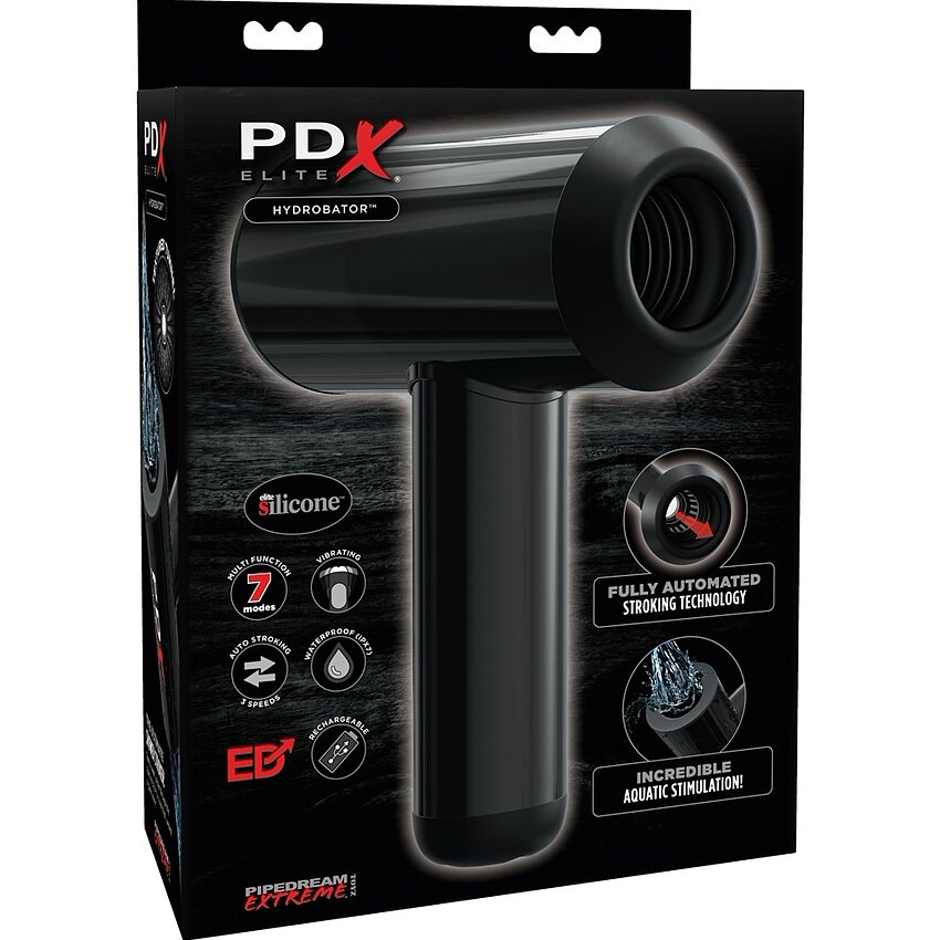PDX Elite Hydrobator este un aparat modern, zămislit pentru a oferi o utilizare practică și primitoare în medii umede. Cu un estetică compact și zdravăn la apă, asta este realizat din resurse de lux cum ar fi ABS și silicon, încrezând durabilitate și o senzație simpatică la utilizare. Tunelul său intern este prevăzut cu texturi variate - puncte și încrețituri - care creează o stimulare suplimentară. Lungimea nealterată a dispozitivului este de 18,4 cm, iar mânerul ergonomic, ce adaugă o extensie suplimentară, ajunge la 21,3 cm.