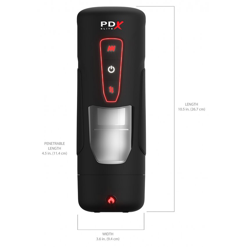 Dispozitivul automat PDX Elite Milk Me Hotter transmite vibrații tari și masaje intermitente, având o electronică de încălzire care imită temperatura corpului. Cu 10 feluri de vibrație și 10 chipuri de masaj, controlate printr-un panou LED, acest produs conține de un cilindru extrem de neted, ușor de curățat. Designul său discret îl face ideal pentru utilizare personală.