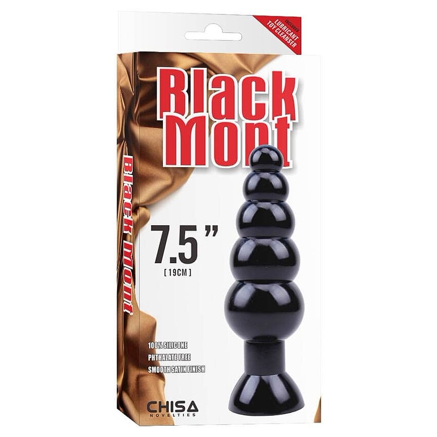 Black Mont Beads este un anal plug meșteșugit din silicon, însușit cu o ventuză cu susținerea căreia se poate lipi de orice regiune plană pentru a fi utilizat fără mâini. Acesta are o mărime totală de 18.5 cm și un calibru variabil, între 2.4 și 5.5 cm.
