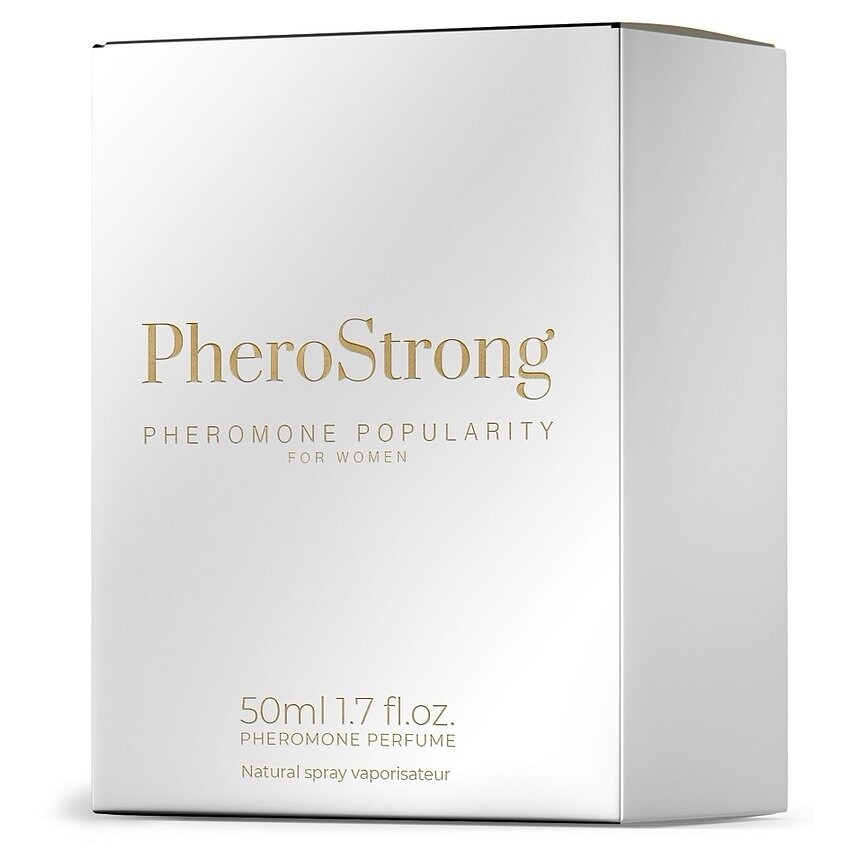 Parfum cu feromoni PheroStrong Popularity 50 ml cu aromă inspirată de Paris: patchouli, acorduri albe, note muscate și floarea Datura. Formula discretă ajută încrederea și se potrivește pentru uz zilnic.