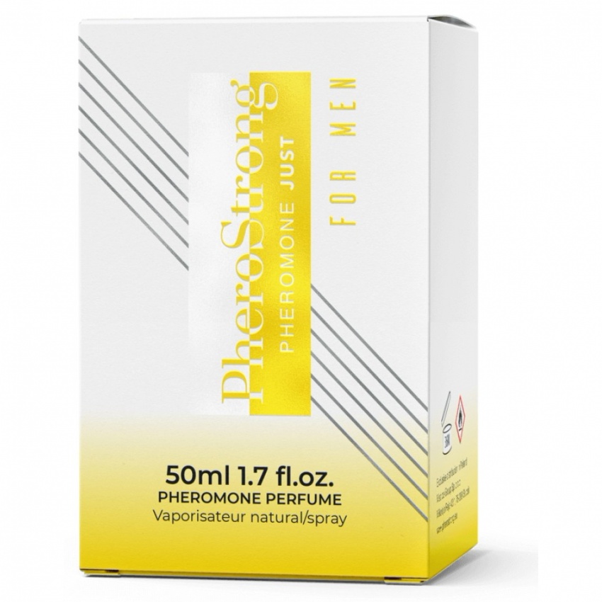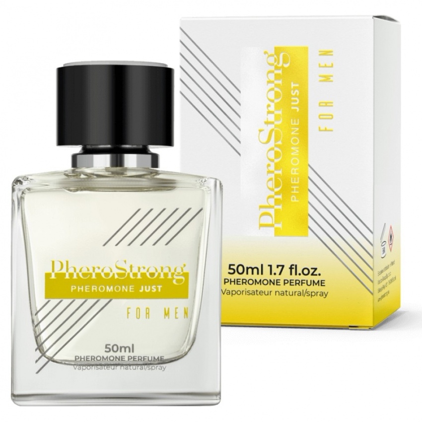 Parfum cu hormoni de atracție PheroStrong Just for Men, 50 ml — acorduri citrice şi marine, inimă florală şi bază lemnoasă. Persistenţă îndelungată, ambalaj discret şi compact; adecvat pentru purtare zilnică şi momente speciale.