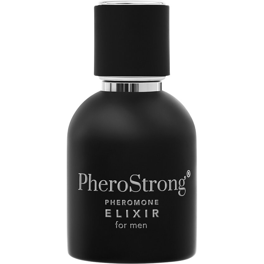 PheroStrong Elixir Feromoni 50 ml: parfum de lux cu note de ylang-ylang, bergamot, heliotrop, hedione și trandafir bulgăresc; bază de smirnă și lemn de santal. Flacon compact pentru transport discret. Aplicare pe încheieturi, gât sau după urechi. Uz extern. Evitați contactul cu ochii.