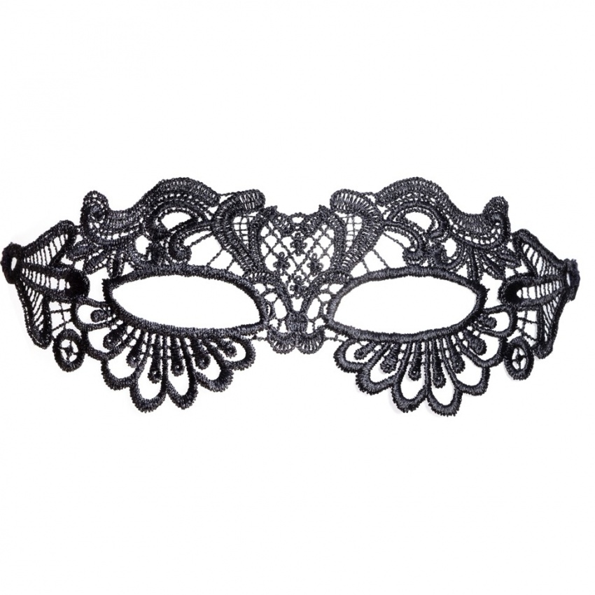 Masca fin decorată Cottelli: bandaj negru, 100% poliester, cu găuri integrate pentru o privire discretă. Panglici din dantelă ajustabile pentru fixare confortabilă. Unisize, neted și sigură.