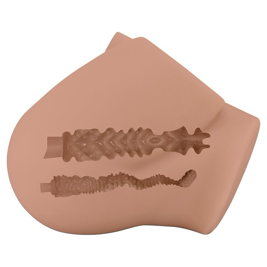 Masturbator dual Pretty Love Bernace, cu două găuri independente și tunel texturat pentru stârnire variată. Material moale, pliabil, ușor de purificat și depozitat discret.