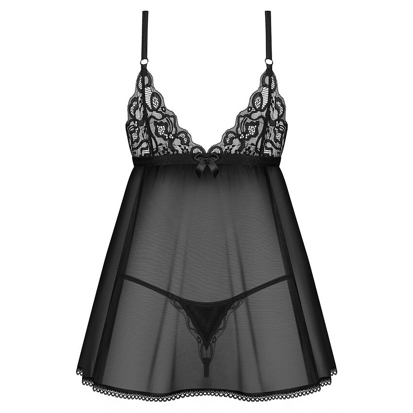 Babydoll Obsessive Blomentis Negru este o creație de lenjerie uluitoare și extrem de seducătoare, inventată și produsă de valorosul brand de lenjerie Obsessive din Polonia.