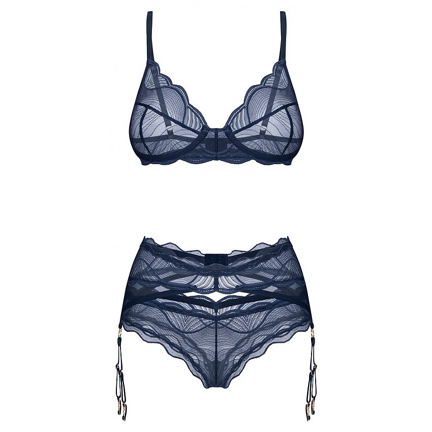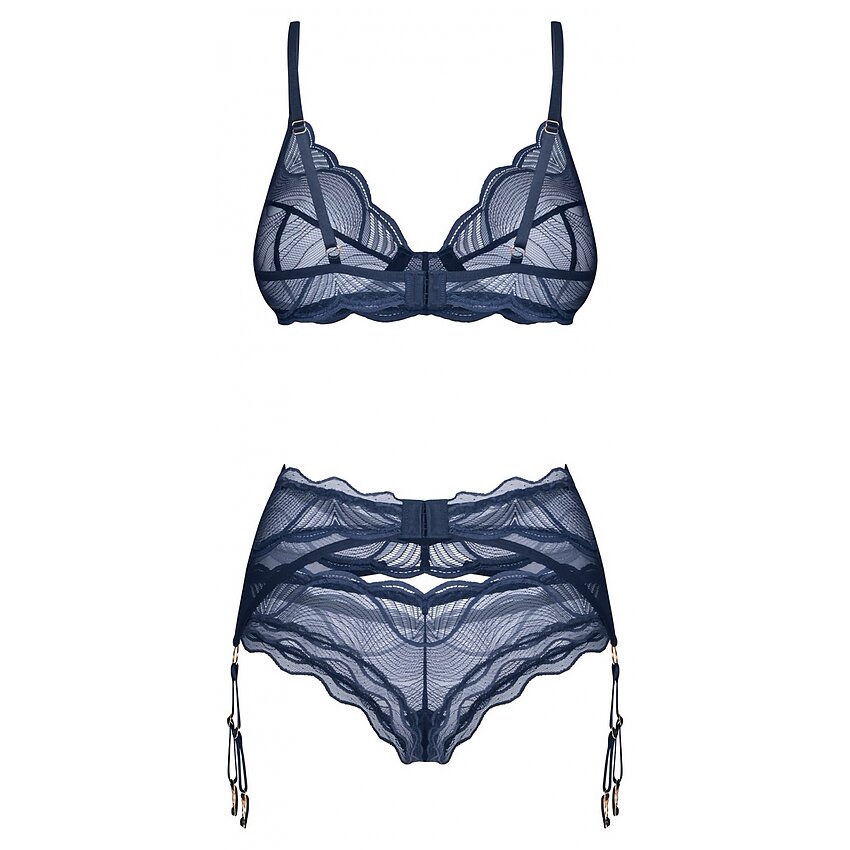 Set Cu Portjartieră Obsessive Nightly Albastru este o ținută de lenjerie fantastică și extraordinar de captivantă, gândită și produsă de distinsul brand de lenjerie Obsessive din Polonia.