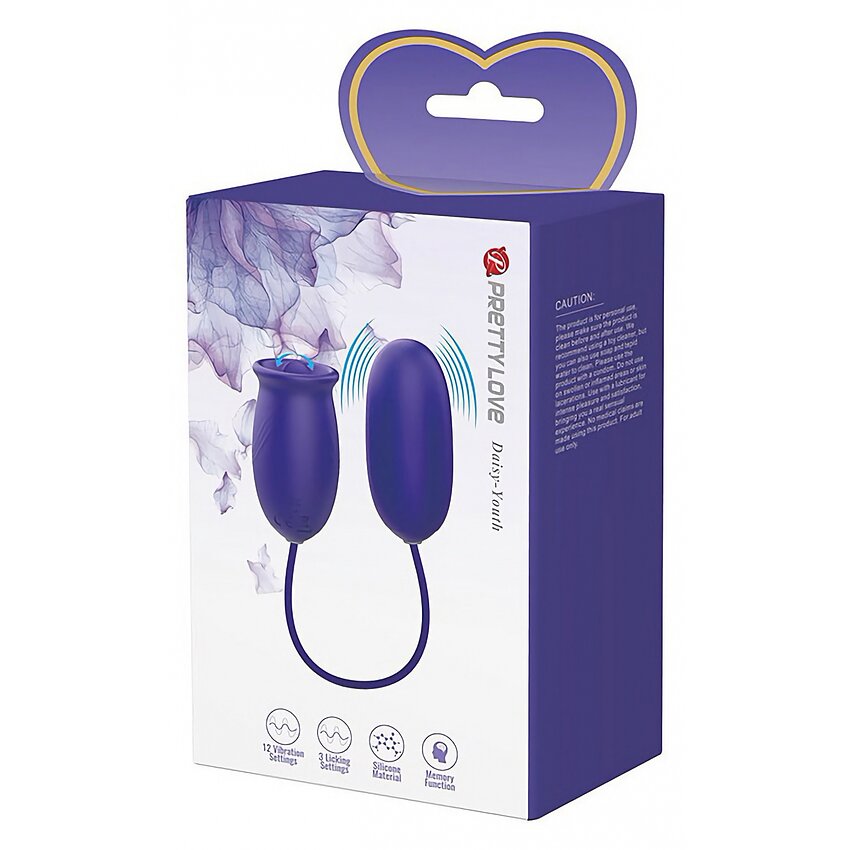 Vibrator Pretty Love Daisy Youth, reîncărcabil, din silicon catifelat. 12 moduri de vibraţie, 3 funcţii de lins, memorie pentru setarea preferată. Autonomie ~60 min, încărcare 120 min. Stil discret și ergonomic.