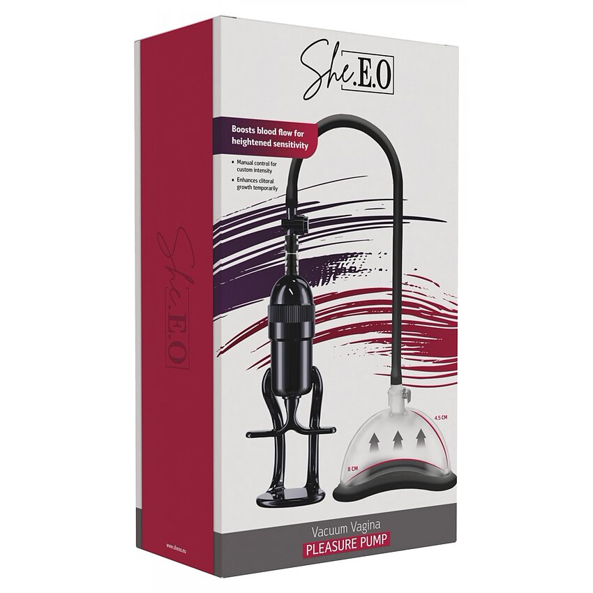 Pompa vacuum She EO pentru zona intimă crește receptivitatea și intensifică trăirile prin aspirație delicată. Include pompiță manuală, supapă de eliberare rapidă și valvă de menținere a presiunii pentru control sigur. Cupă 4.5 x 8 cm, ring 8 cm.