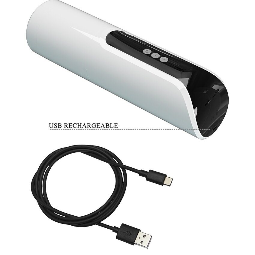 Produsul este reîncărcabil, cu un estetică compact și nuanțe discrete (alb, transparent). Materialul TPR este extensibil și agreabil la atingere, creat pentru utilizare repetată.