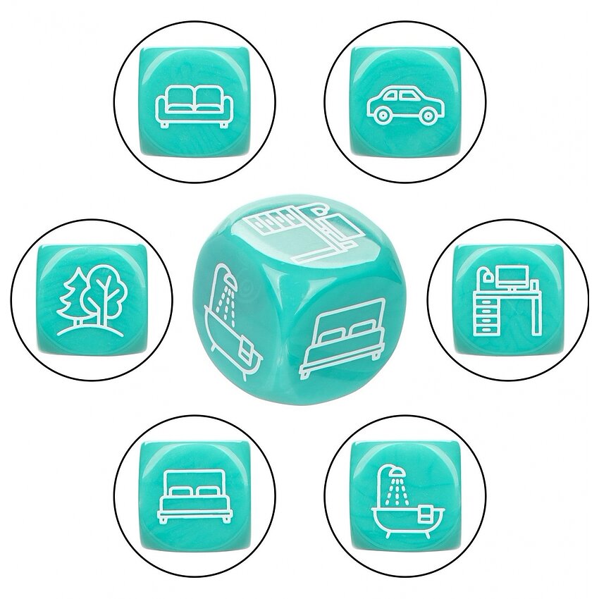 Beneficii și atribute: - Set complet: 3 zaruri pentru parte, acțiune și loc - Material durabil: acrilic, ușor de curățat - Compact și discret: grozav pentru depozitare pe noptieră sau în cutie cadou - Folosire facilă: reguli clare, rundă rapidă - Potrivit pentru cupluri care vor varietate și ocazii jucăușe