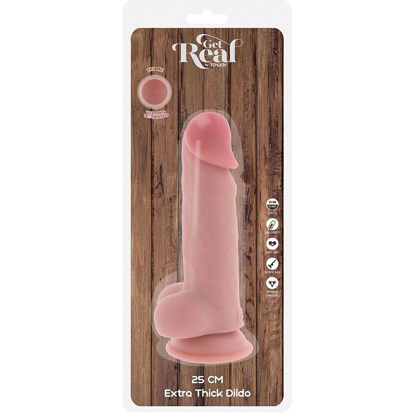 Dildo realist ToyJoy, 25 cm, dual densitate: nucleu ferm și înveliș exterior moale pentru confort și stabilitate. Bază cu ventuză pentru utilizare hands-free, textură detaliată, întreținere ușoară și estetică discret.