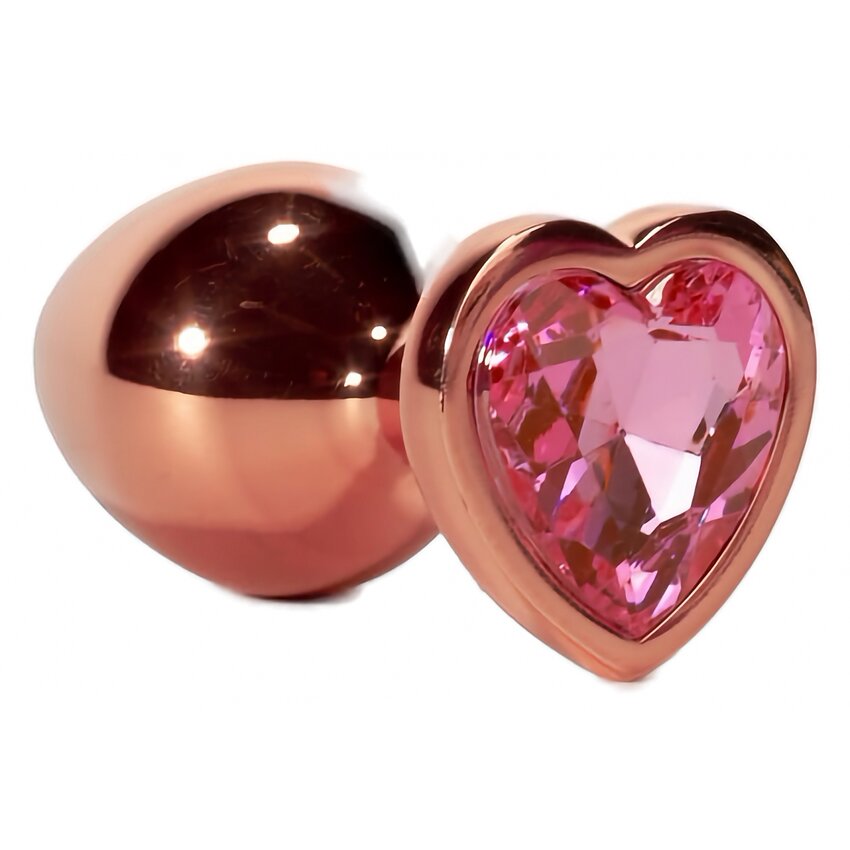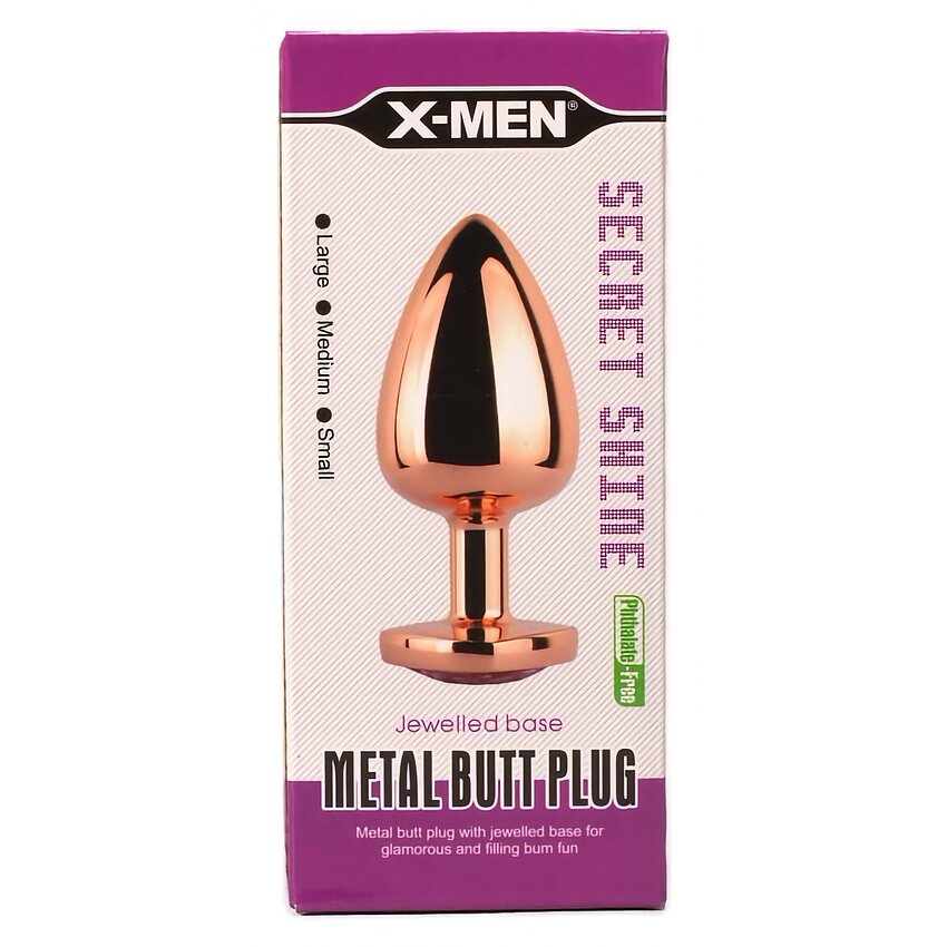 Dop anal metalic X-Men Secret Shine S (7,1 cm). Finisaj rose gold cu ornament în formă de inimă. Formă conică pentru dilatare treptată, arie lucioasă pentru alunecare ușoară și bază texturată pentru stabilitate. Unisex. Curățare facilă; folosiți agent de ungere pe bază de apă.