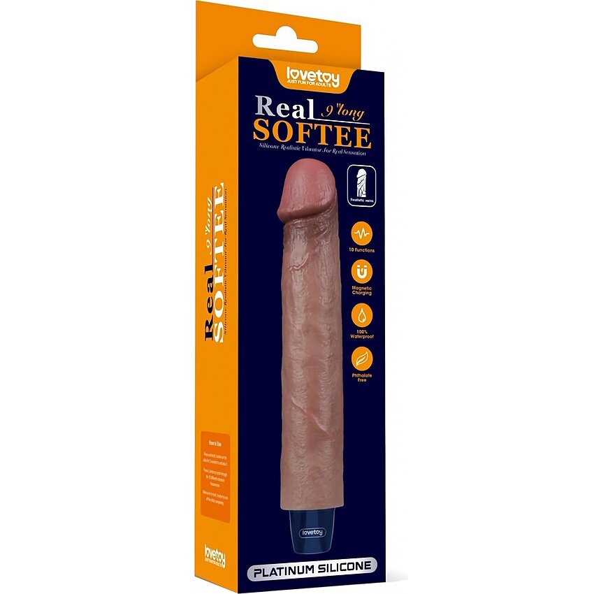 Vibrator Lovetoy Real Softee din silicon platină, catifelat la atingere, cu 10 moduri de vibraţii, motor insonor şi încărcare USB. 100% impermeabil, mărime 22.8 cm (inserabil 20 cm), diametru 4 cm. Stil realist pentru stârnire precisă.