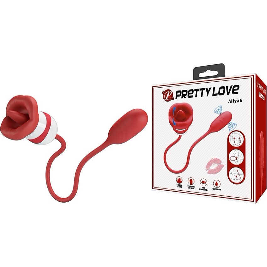 Pretty Love Aliyah împreunează două moduri de stârnire într-un design compact inspirat din mișcarea buzelor. Un punct final imită lingearea delicată, iar celălalt oferă pulsații intense pentru o senzație complementară și intensă.