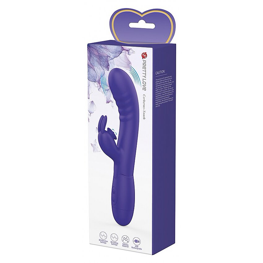 Pretty Love Cerberus Youth este un vibrator tip rabbit, zămislit pentru stârnire multiplă și reglaje fine. Capul îndoit țintește punctul G, iar brațul mic tip bunny transmite contact direct și precis cu clitorisul. Conține de 30 de aplicații de vibrație pentru a adapta intensitatea după preferințe.