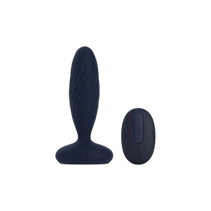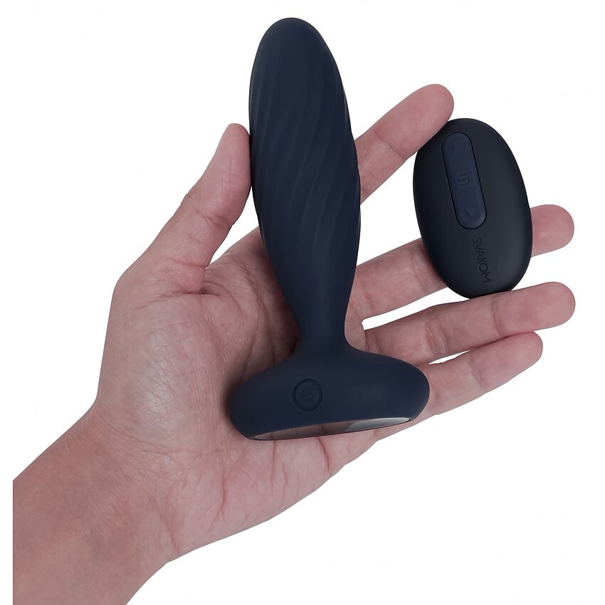 Atribute şi avantaje practice: - Control prin aplicaţie SVAKOM şi telecomandă magnetică - 7 feluri x 5 niveluri de intensitate pentru adaptare rapidă - Funcţie de împingere independentă combinată cu vibraţii - Memorie, bază iluminată şi blocare pentru călătorii pentru utilizare discretă - Cu acumulator (USB magnetic) şi husa de depozitare inclusă - Dimensiuni practice: insertabil 10 cm, calibru 3.2 cm, lungime totală 12 cm - Material: silicon + ABS; culoare: bleumarin - Timp încărcare ~2 ore; autonomie aproximativă ~1 oră - Greutate: 83 g (dispozitiv); telecomandă: 16 g (telecomanda nu este rezistentă la apă)