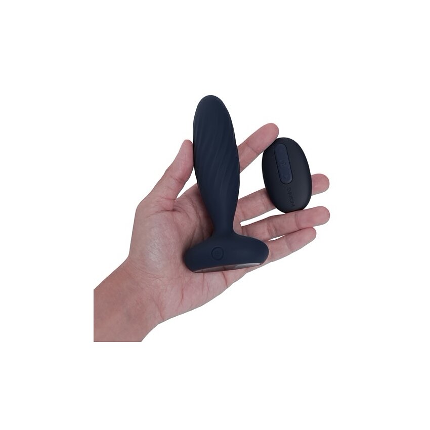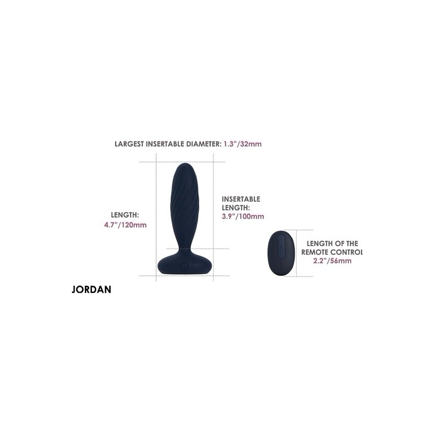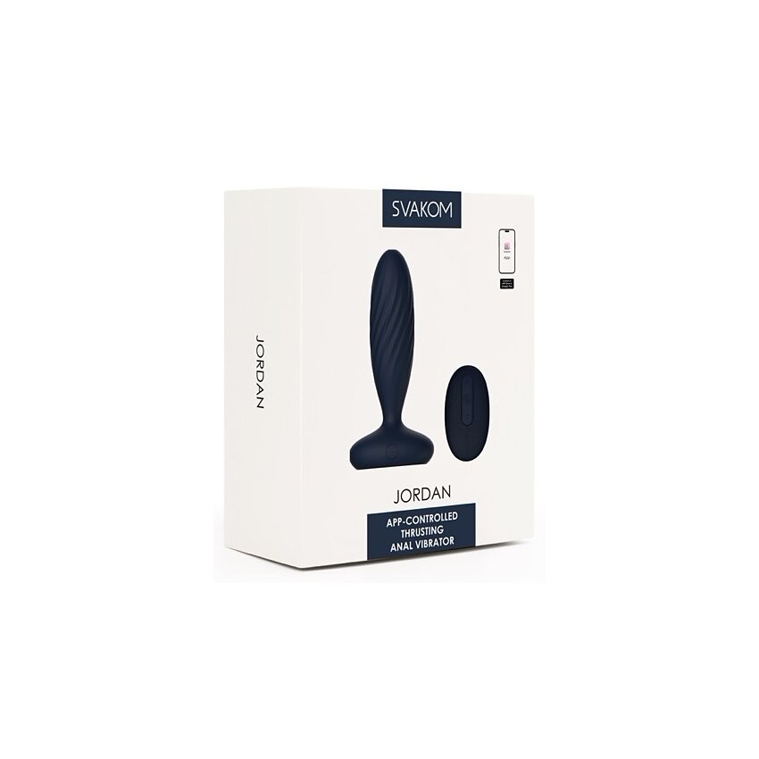 Jordan de la Svakom, vibrator anal reîncărcabil cu împingere şi vibraţie combinate. 7 moduri x 5 niveluri. Control prin aplicaţie SVAKOM sau telecomandă magnetică. Bază iluminată, memorie şi blocare pentru călătorii. Insertabil 10 cm, diametru 3.2 cm.