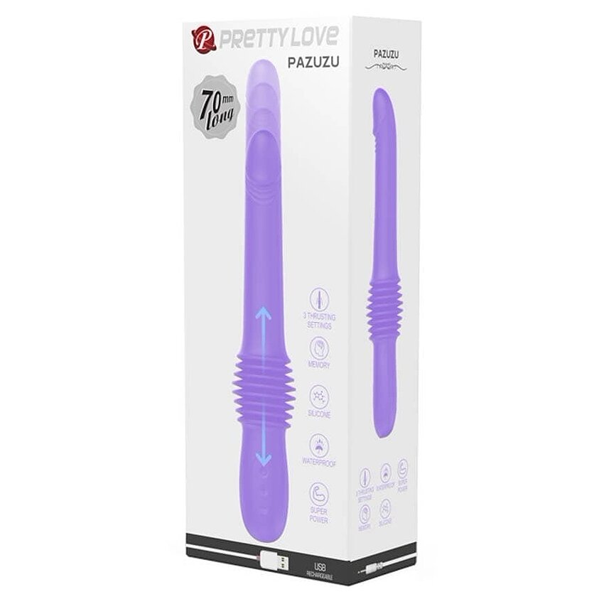 Pretty Love Pazuzu Purple este un vibrator conceput pentru control și manevrabilitate. Mecanismul de pistonare oferă o deplasare în față-înapoi cu extensie de până la 7 cm, reglabilă în 3 moduri. Forma ergonomică și mânerul bine proporționat garantează o prindere stabilă.