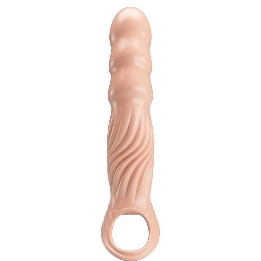 Extensie peniană din TPE, concepută pentru un aspect și o senzație cât mai apropiate de realitate. Textura venată și capul pronunțat oferă un alură natural, iar materialul moale păstrează confortul în utilizare.