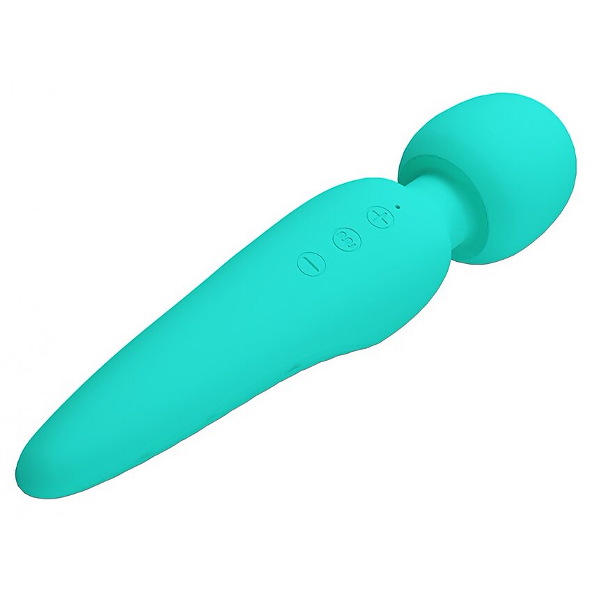 Vibrator tip wand Pretty Love Meredith, cu cap din silicon moale, 7 feluri de vibrație, 100% rezistent la apă și reîncărcabil. Compact (Ø5×21,5 cm), ușor de mânuit și cu control intuitiv pentru ajustare grabnică a intensității.