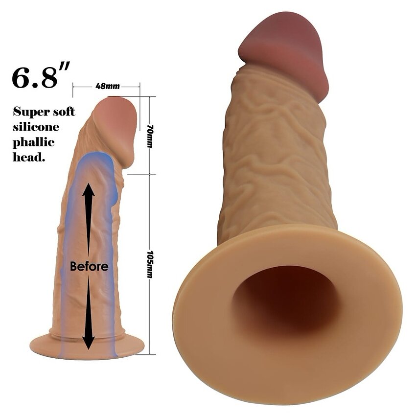 Dimensiuni cheie: lungime perfectă tija 17,5 cm, extindere inserabilă 10 cm, calibru 4,8 cm. Extinde penisul cu cam 7 cm.