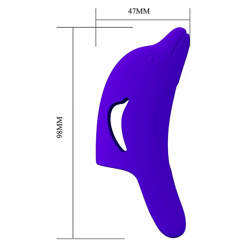 Stimulator slip-on din silicon Pretty Love Delphini, cu 10 maniere de vibraţie. Vârf înclinat şi texturat pentru stimulare precisă, se fixează pe deget pentru control bun. Compact, lezne de curățat și discret.