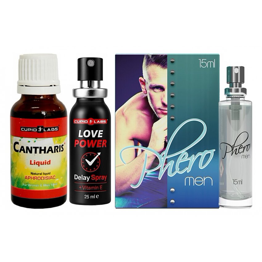 Detalii și avantaje pe produs: - Love Power Delay 25 ml (Cupid Labs): spray cu acțiune locală, conceput să reducă sensibilitatea și să prelungească actul intim, perfect atunci când doriți mai mult control și satisfacție pentru ambii parteneri. - Cantharis Plus 20 ml: picături pe bază de plante, unisex, care stârnește instinctul sexual și intensifică vigoarea generală; administrare recomandată 10–15 picături, aprox. 30 minute înainte, max. 2 sesiuni în 24 h. - PheroMen 15 ml (Cobeco): esență cu efect seducător, conformă pentru ieșiri și întâlniri intime; adaugă magnetismul necesar pentru a face impresie și pentru a dezvoltă siguranța în tine.