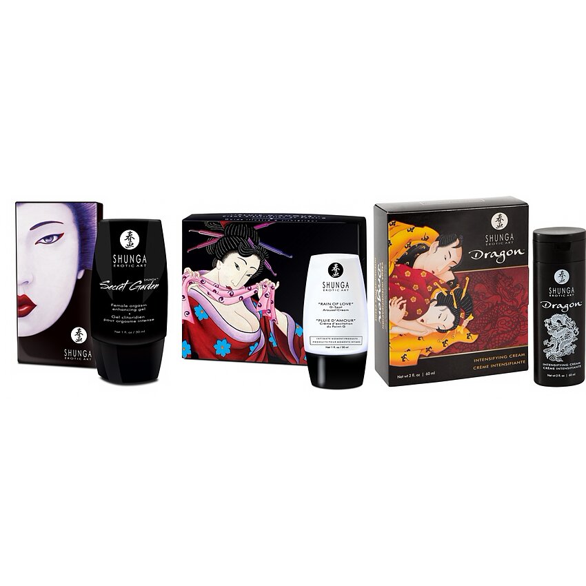 Acest set reunește trei formule gândite să amplifice intimitatea în doi: o unguent pentru performanță masculină și două creme feminine dedicate clitorisului și punctului G. Folosite sincron, pot transforma preludiul într-o experiență electrizantă și actul trupesc într-o aventură de senzații.