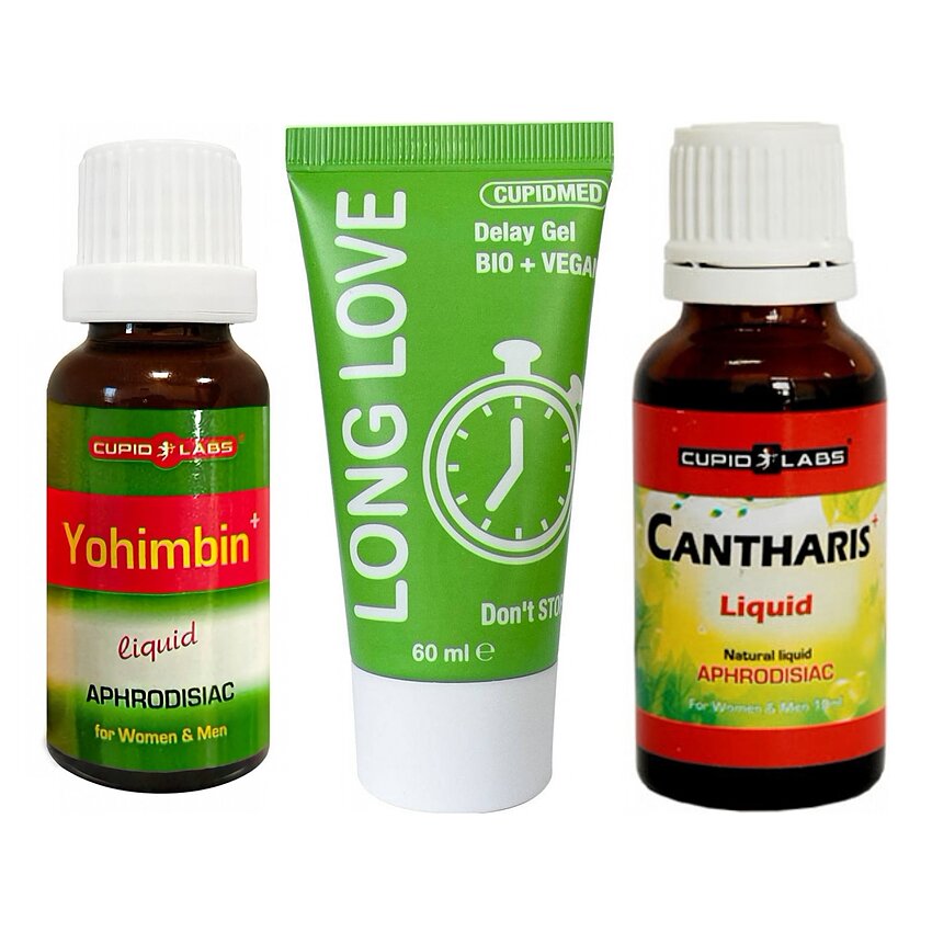 Cum le utilizați împreună: luați picăturile (Cantharis sau Yohimbin) cu cam 30 minute înainte pentru a trezi apetitul și energie. întrebuințați gelul local la 20–30 minute ulterior încorporarea picăturilor sau direct înainte de atingere pentru a obține controlul duratei. Ajustați cantitățile la toleranța personală pentru a găsi îmbinarea ideală.