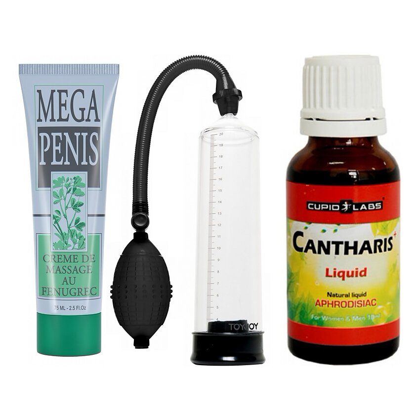 Kit perfect pentru dorință, fermitate și încredere. Picăturile amplifică apetitul, crema ajută volum și circulație, iar pompa crește umplerea — folosite laolaltă oferă sesiuni mai intense, puncte culminante mai puternice și o stare de bine în dormitor.