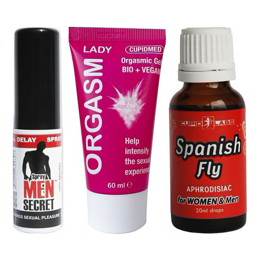 Detalii produs: Men Secret Spray 15 ml (spray pentru bărbați) scade sensibilitatea locală și ajută la controlul actului ejaculării, dând încredere în performanță. Gel Orgasm Lady 60 ml (gel pentru femei) are textură plăcută, hipoalergenică, fără parfum, punând la dispoziție emoții de încălzire și mărirea receptivității. Picăturile Spanish Fly 20 ml sunt un concentrat normal pentru stimularea libidoului, potrivit atât pentru femei, cât și pentru bărbați.