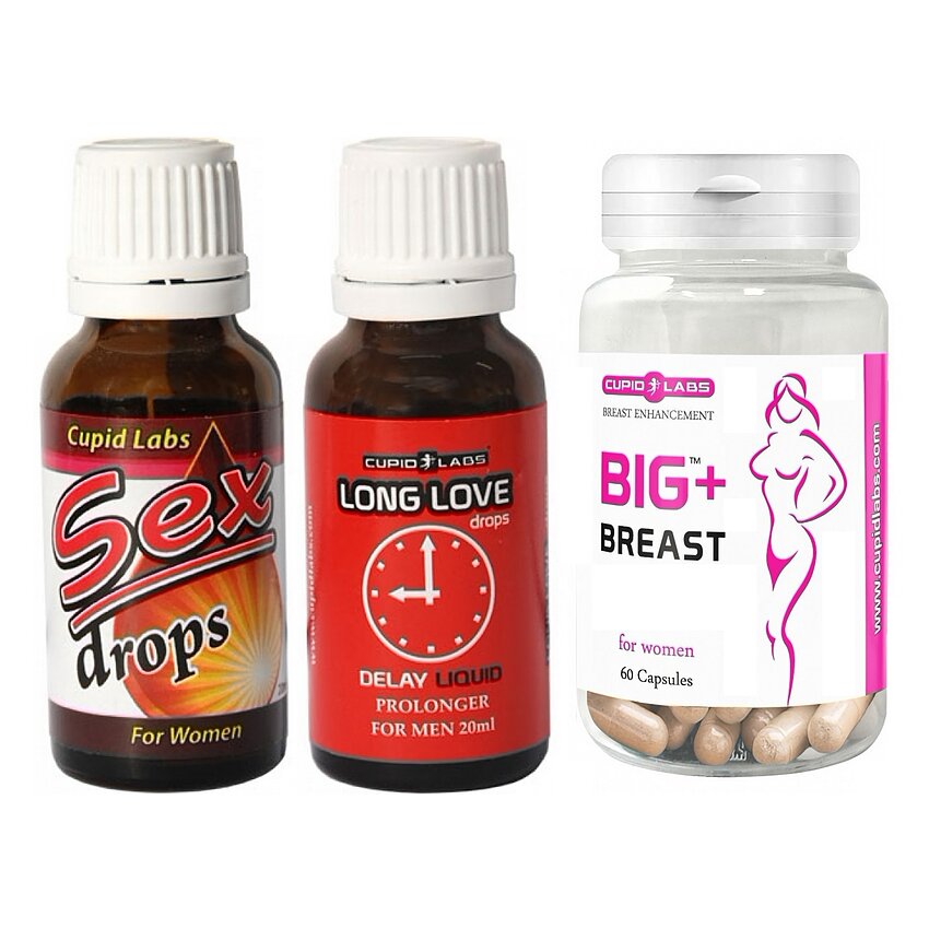 Un pachet pentru cuplu care combină fermitate, excitare şi anduranţă: capsule vegetale pentru volum şi tonus, picături feminine pentru dorinţă şi picături masculine pentru control. Folosite laolaltă crește preludiul, delectarea şi durata activităţii intime.
