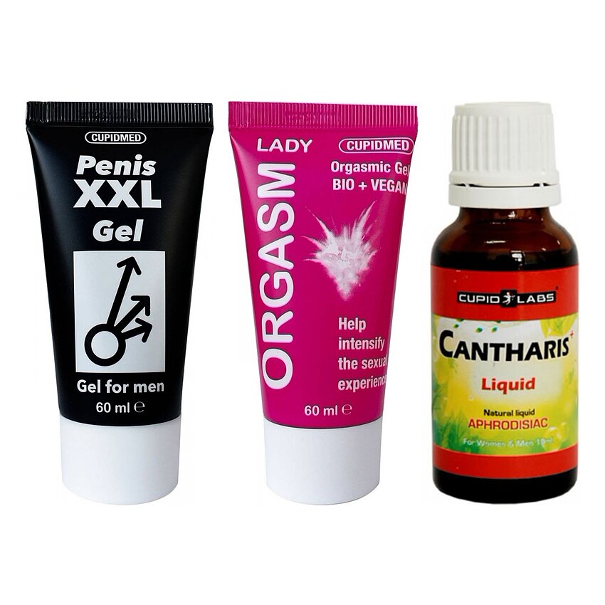 Folosește întâi picăturile reale Cantharis: 10–15 picături în băutură sau sub limbă cu aproximativ 30 de minute cândva pentru a stimula dorința și vitalitatea. După activare, aplică gelul destinat partenerei pentru a intensifica senzațiile locale și a amplifica receptivitatea. În final, aplică gelul bărbătesc conform instrucțiunilor pentru susținerea circulației locale și pentru mărirea încrederii la nivelul erecției.