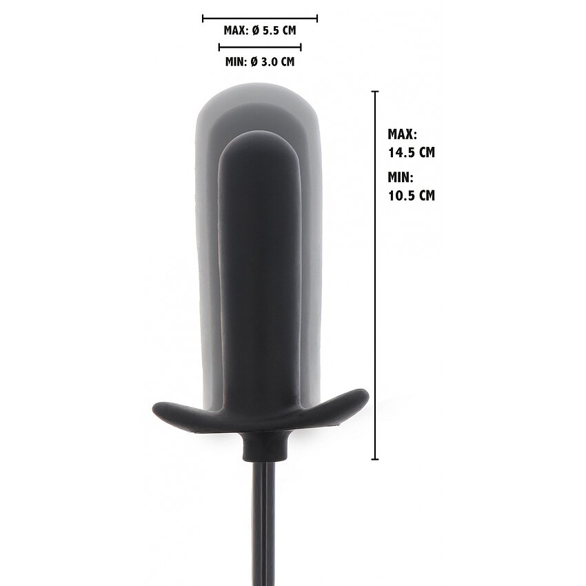 Plug anal umflat din silicon 100% pentru introducere lină și extindere controlată. Valve de eliberare rapidă pentru siguranță. Inserabil 10.5–14.5 cm, diametru 3–5.5 cm. Ideal pentru reglaj progresiv.