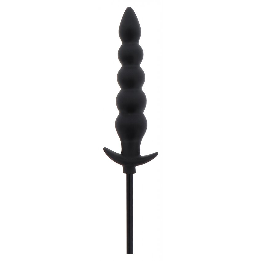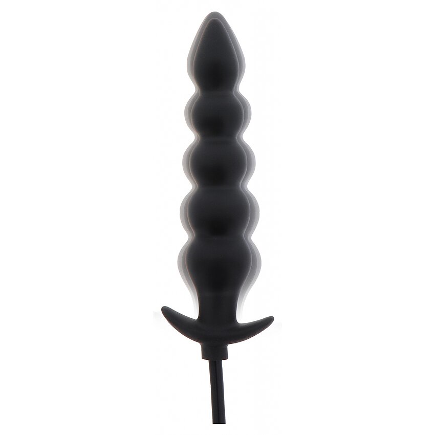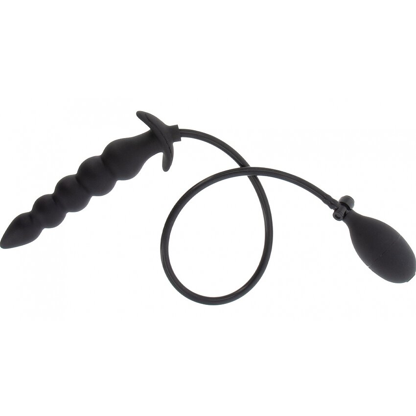 Plug anal gonflabil, din silicon 100% — striat, cu supapă rapidă de eliberare. Inserabil 18.5–23 cm, diametru 4–5.5 cm. Ajustează umflarea pentru senzaţie de plenitudine. Culoare: negru. Marcă: Hidden Desire.