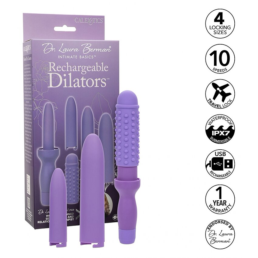 Marime: _ Culoare: Mov Material: ABS with PU cote (massager, dilators) | Silicone (cap, sleeve) Cantitate: _ Livrare: Confidențială Are acumulator cu Lithium Ion până la 60 minute de funcționare cu o încărcare Brand: CalExotics