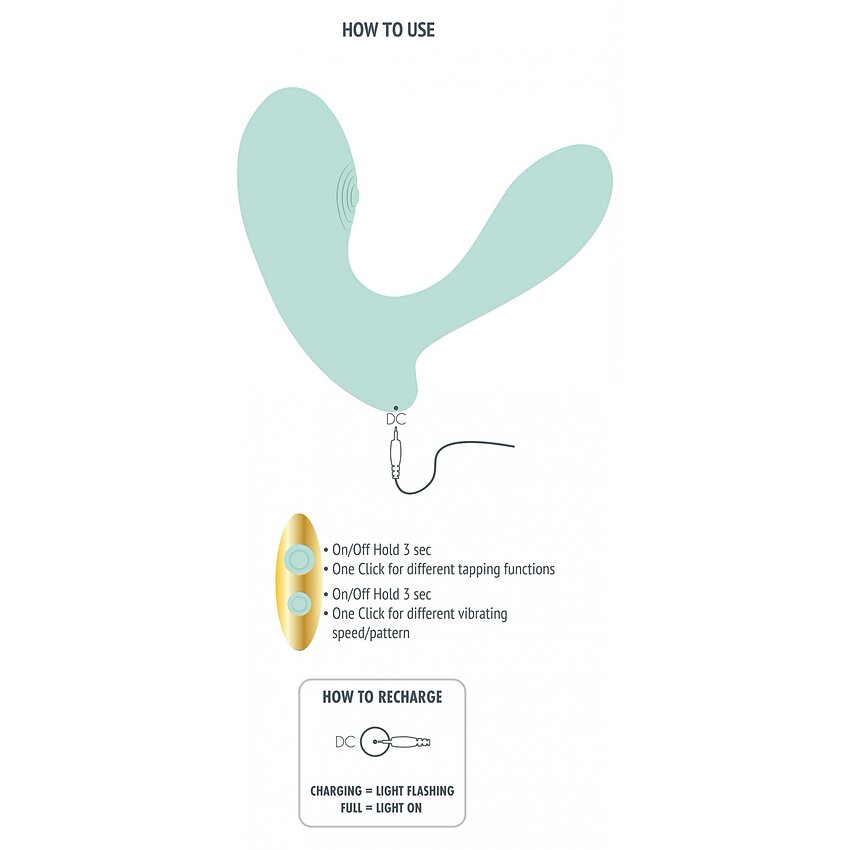Marime: _ Culoare: Mint Material: Silicon, ABS Cantitate: _ Livrare: Confidențială Are acumulator cu Lithium Ion 9 tipuri de vibrații două motoare se încarcă complet în 120 de minute până la 60 de minute de funcționare cu o încărcare