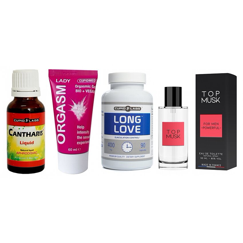 Cum se întregește produsele: feromonii aduc atenția, picăturile amplifică dorința, gelul extinde receptivitatea feminină și preludiul devine mai intens, iar pilulele oferă suportul pentru control la final. Împreună creează o experiență coerentă: întâlnire seducătoare, conectare fizică și emoțională, trăiri intensificate și o revenire a încrederii în viața intimă.