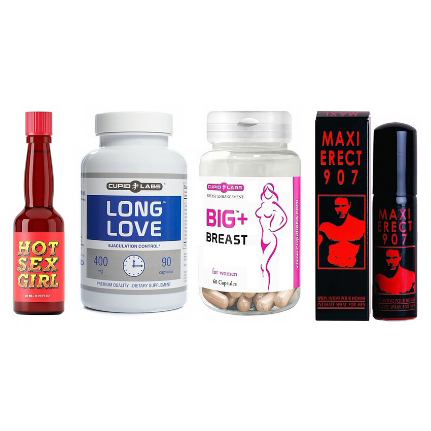 Detalii și beneficii ale produselor din set: - Pilule pentru mărirea sânilor (60 capsule): formulă pe bază de vegetale cu fitoestrogeni care susțin fermitatea și conturul sânilor în timp. Rezultatele apar treptat; consecvența este esențială. Produsul nu este destinat gravidelor sau oamenilor care alăptează; consultați medicul în caz de alergii. - Tablete pentru întârzierea ejaculării (90 capsule): compoziție reale ca de exemplu Tribulus și Butea care facilitează la prolongația momentului și la creșterea controlului. Administrare practică, două capsule pe zi recomandate pentru eficiență optimă. - Afrodisiac picături 20 ml: extracte naturale (scorțișoară, măghiran etc) care stimulează instinctul sexual și favorizează ungerea vaginală. Se diluează în apă; efectul apare rapid, sporind excitația și intensitatea preludiului. - Spray pentru erecție 25 ml: formulă pentru aplicare locală ce ponderează sensibilitatea ușor și susține o erecție mai fermă și durabilă; efect rapid, temporar, desăvârșit pentru partidele mai lungi.