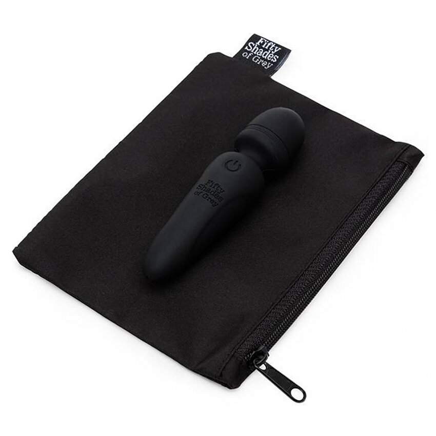 Mini Wand compact din colecția Fifty Shades Of Grey: corp din silicon fin, cap rotund ferm și 20 moduri de vibrație. Cu acumulator USB, autonomie aprox. 80 minute, husă din plastic reciclat. Potrivit pentru uz extern; spălați și folosiți lubrifiant pe bază de apă.