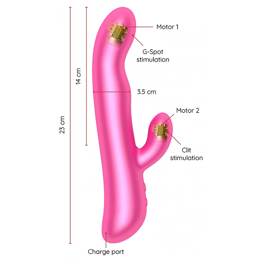 Produs din silicon sigur pentru corp, cu finisaj moale și braț extern flexibil, se modelează ușor pe anatomie. Cele două motoare sincronizate și tehnologia ROTATION oferă mișcări de întoarcere puternice, iar cele 10 niveluri de vibrație permit reglaje fine ale intensității.